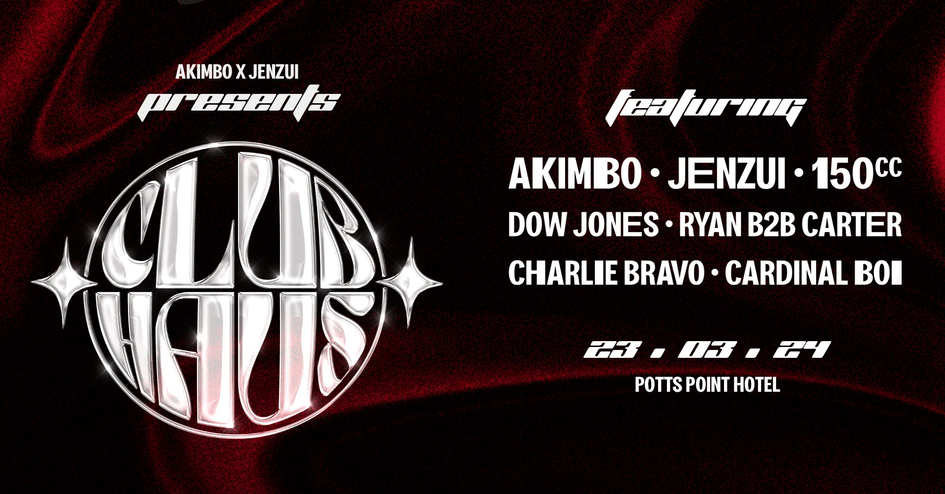 Join us for a night of beats and vibes at Club Haus II presented by Akimbo & Jenzui on Saturday, March 23rd, from 8pm till late at Boogie Mountain.